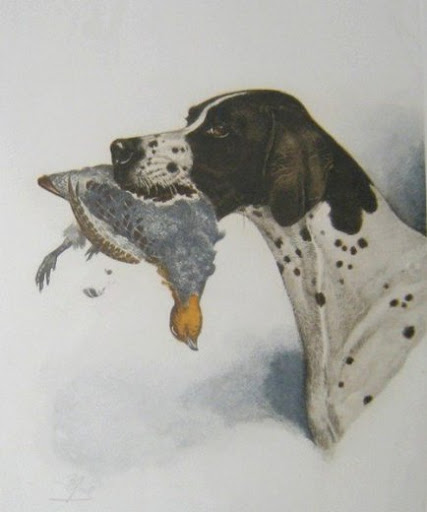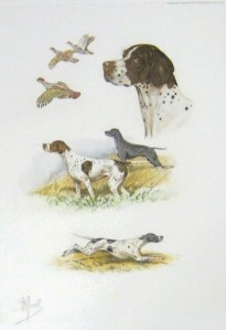 Here are some some great prints from the past! My friend and hunting companion Marc Patoile gave me a print from France by Boris Riab with the Pointers and Gray Partridge. It seems like there are less prints on the cover of magazines today! Which is a shame! I truly enjoy bird dog and sporting art…it reminds me of being there in the field…watching the dogs float through the cover.