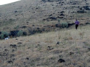 This kind of terrain is unforgiving…the country is tough – the dogs need to be tougher. Get down on ground level in many areas and it becomes apparent that what looks like parched rolling hills at a distance, is actually endless dried grasses punctuating miles and miles of black volcanic rocks. These stones lie in wait to test the patience and perseverance of man and beast. Unfit and/or unmovitvated dogs don’t last long here; the same goes for horses.