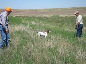 Walter ventured out from Southern California to see (and get to know) his new Pride and joy! We headed out east to Jim Masolotte’s ranch to work her on some pigeons and what a great day we had! Pride’s a wonderful dog, and I’m very excited for Joanne and Walter to take her back to their Southern Cali home! We’re headed to Northern Colorado in September to chase Sage Chickens with our pointing dogs…of course, I’m taking the little Hell-on-wheels English Cocker with us to retrieve our downed chickens! There will be plenty of tall tails and yarns to come in the very near future!