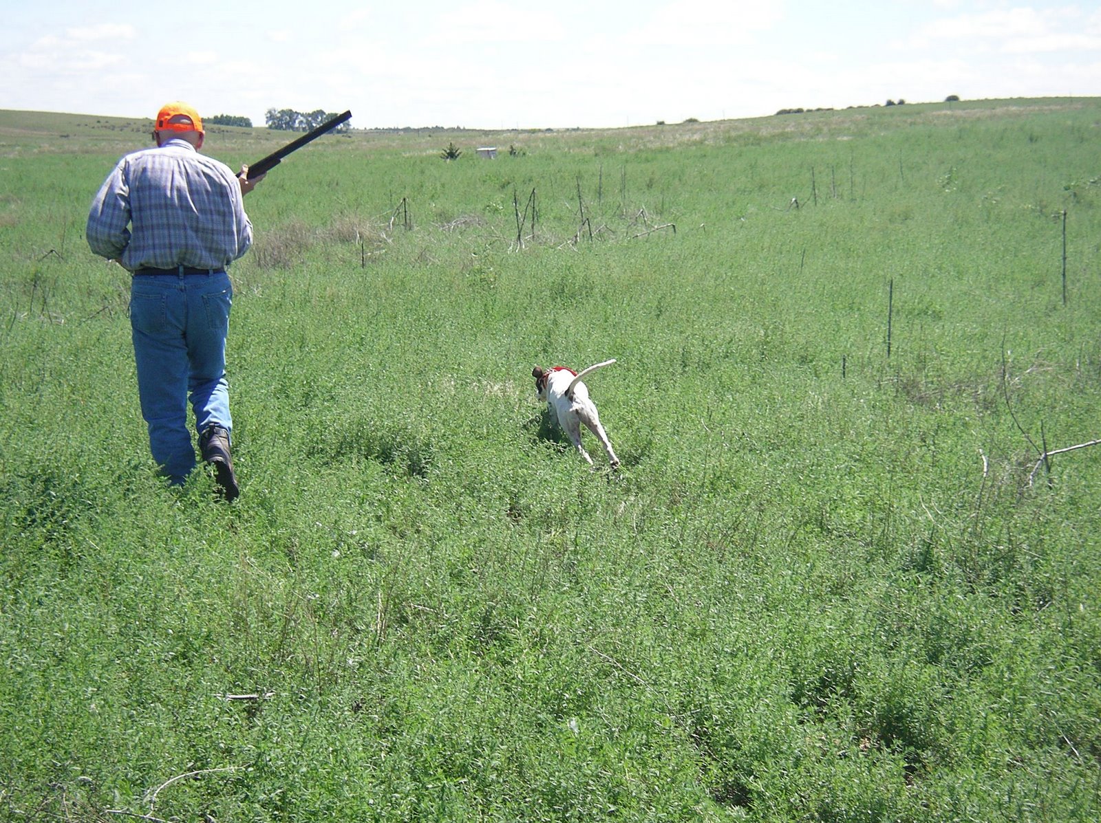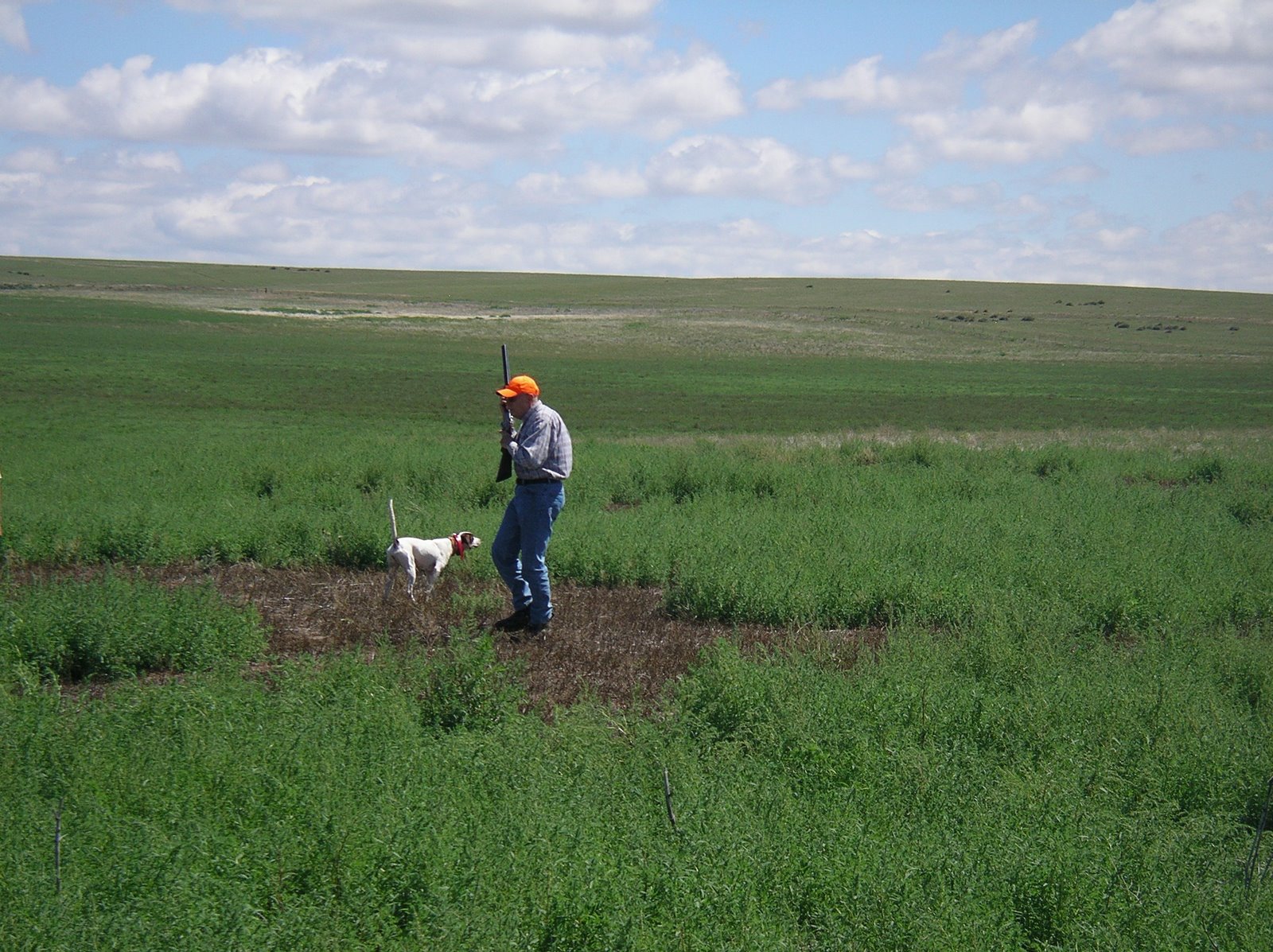 Walter ventured out from Southern California to see (and get to know) his new Pride and joy! We headed out east to Jim Masolotte’s ranch to work her on some pigeons and what a great day we had! Pride’s a wonderful dog, and I’m very excited for Joanne and Walter to take her back to their Southern Cali home! We’re headed to Northern Colorado in September to chase Sage Chickens with our pointing dogs…of course, I’m taking the little Hell-on-wheels English Cocker with us to retrieve our downed chickens! There will be plenty of tall tails and yarns to come in the very near future!