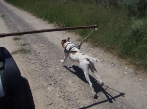 Hopefully all of us have been preparing for the season by keeping our dogs (and ourselves) in shape. We’ve done this a few different ways. I mountain bike and run during the summer. To get and keep the dogs in shape, we include some free running, running from horseback, roading from an atv, and in the case of one of my dogs, running in a harness with some welding cable attached. Each of these activities work the dog in different ways and I always try to keep it balanced, not overworking any one area.