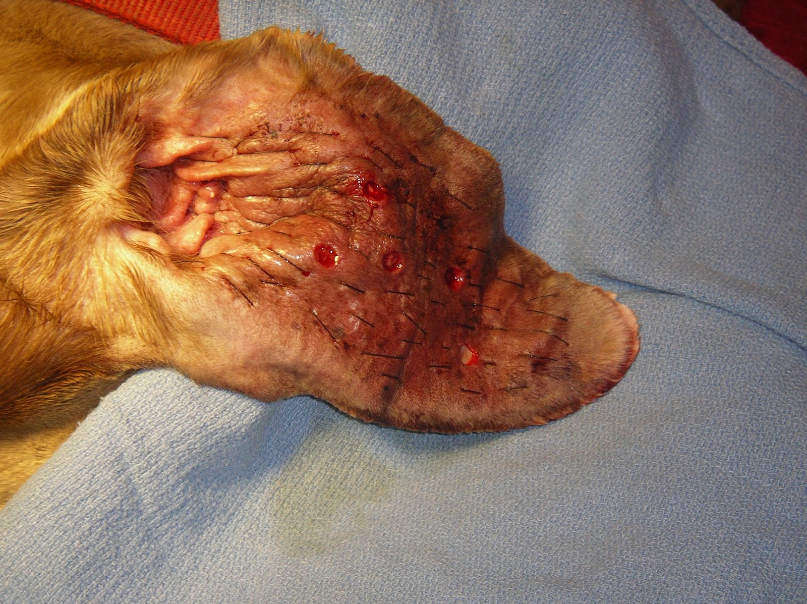 >Thanks for all your comments guys!This was an aural hematoma that I fixed on Tuesday! It was the worst one I’ve seen…It could have been prevented had the owner brought the dog in when they noticed him shaking his head! We owe it to our hunting companions!Shawn