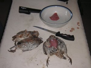 >Dale…The only birds I gut are sage hens…which I do fairly soon! As long as the birds aren’t too shot up or the dogs didn’t use them as squeekie toys, I don’t clean them for 5 days!Shawn