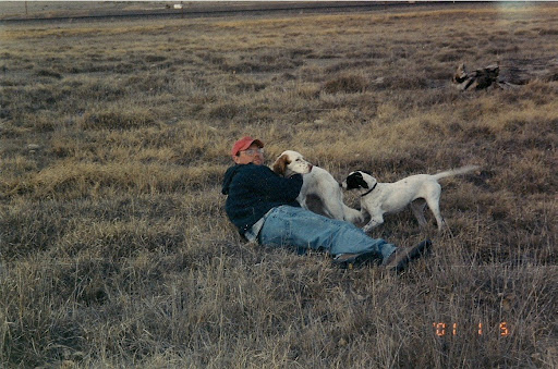 The bulk of the quail that we flushed on the hillside flew down across the road into the same narrow buffer strip that Farley and I hunted when we first got there. Eager to see more of Farles’ points, I followed him down near some cotton wood trees with brushy understory that was almost impenetrable. On the banks of the brushy creek Farley again cranked down on point. I then intriguingly watched him do something that he would do numerous times throughout his life. Like a wolf, Farley snarled with teeth flaring and then succintly pounced and came up with a still-live bird in his mouth. Farley had caught an uninjured wild quail right before my eyes! You see, his points were so intense, that he literally paralized the birds to where they would not–or could not–move, and then he would catch them. I’ve never seen another dog do this, but Farles did it time and again.