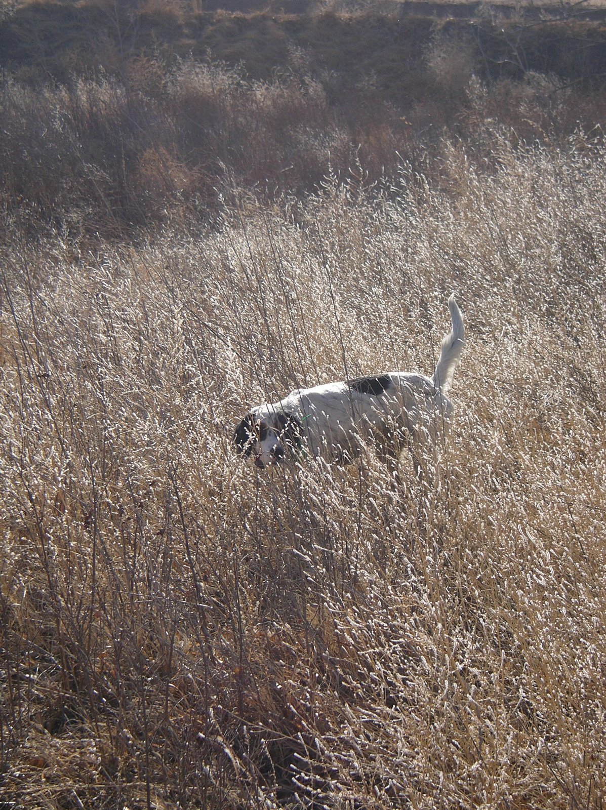 It was a blue bird afternoon…45 degrees and a slight westerly breeze. There were thousands of red-winged black birds fluttering to and fro…at times blacking out the sun and deafening my ears. The dry grasses crunching under my feet as we sauntered along the Platte’s river bottom. Hoping all the while for one last encounter with the resident birds and that gustatory stimulation, like Pavlov’s dogs, of a bird dog suspended momentarily…fixed with her tale-tail sign that we’re in the presence of a gentleman.