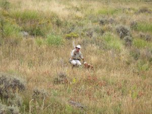 5. >This was a day of miracles re: the first photo.a.) Miracle the First: Shawn dropped me off with Pride at about 10000 ft. I was to walk down to the parking area, about 5000 feet.b.) Miracel the Second: It was warm. The dog and I just took our time. Thank God it was all downhill!c.) About 20 minutes into the trek the greatest Miracal the Third: A blue grouse flushed in front of me and I knocked it down. I called Pride and she came rushing over.d.) The bird wasn’t there! Miracle the Fourth: a second blue got up and I hit it square and Pride ran over to make a retrieve. She was hot and tired and the mouthful of feathers was too much. She got it halfway back but I picked it up with a sense of awe. Maybe it was the thin air, but I was in a surreal world–the bird, the dog and the God-given mountains.d.) Pride wouldn’t hunt dead and ran off to the side. Flash point a hundred yards away and a bird blushed wild. I got her back to me and we started t slowly hunt the area where the first bird was hit. I found my empty shell. Miracle the Fifth: about 30 yards from where I marked the bird down, she pointed, then leaped in and had the first bird, much alive, but very weak.e.) Miracle the Sixth: I actually made it down the rest of the way to the truck. I was exhausted. Too old for that stuff, but I did it.Probably never happen again but I thank Shawn for his patience and his generostiy to put me where they were.Ut in Omnibus Glorificetur Deus!