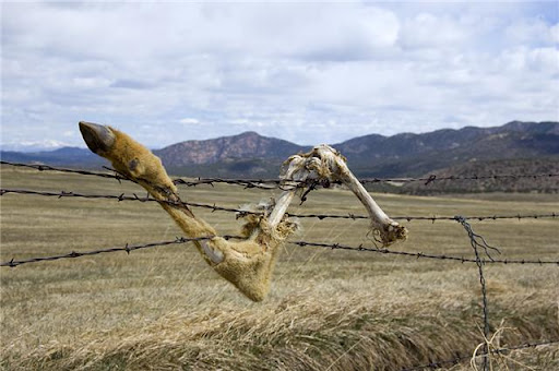 Man is the cruel one in this situation, the barbed wire and cattle guard is what caused these animals to die. Mother nature gives life, and the strong survive. Thats just the way life is. So why do tree huggers cry about people hunting? Animals are going to die no matter what, at least hunters can humanly maintain the population.