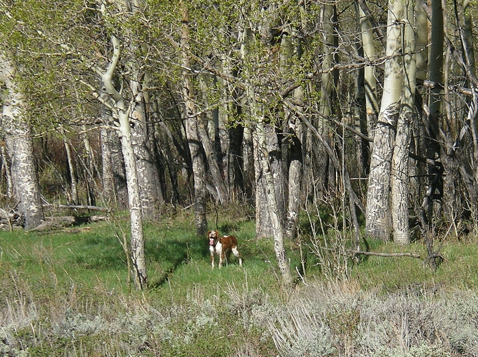 We arrived home at 6pm, after laying Bodhi to rest some 120 miles north of our home, in his favorite hunting grounds, at 10:30 am today. As explained above, Hummingbirds travel at 30 mph in normal flight and up to 63 miles per hour in a dive—making this flight home an easy 2-4 hours. We commemorated his passing with a big picnic and a few toasts to his memorable hunts, a fly fishing trip to a nearby stream for trout, and then arrived home some 8 hours later. Rebecca and I sat down outside on the chaises for the first time this spring to a warm 80 degree day in Colorado. Along came to the feeder our first hummingbird, a red breasted one, who stopped to look at us, and feed long on the feeder, even allowing several photographs, then returning to his new home in the sky, helping others achieve enlightenment on their paths in life. He winked to his great nephew, Remy, also a Brittany from the same lines and who is only 9 months old, as he his very big paws to fill. He had beaten us home with his new found wings. I knew he would be reincarnated as a bird, but didn’t know that he would be smart enough to pick a species of bird that is faster than a pointing dog.