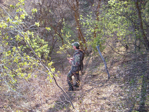 The weekend before last, my good friend Matt Lucia and I had the opportunity to chase some turkeys in Southeastern Idaho on some prime private property. Neither of us had hunted this particular property before. On Friday morning, we arrived later than we’d hoped, but immediately commenced our hunt. As we donned our camoflauge gear at the truck, we both clearly heard one gobble in the mountains to the south. There would be no easy riverbottom hunt for us this morning . . . the hills were calling.