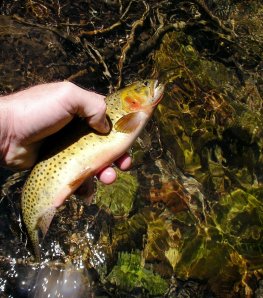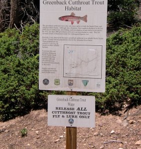 >What a glorious day! Karen and I decided to get away for the afternoon and do some hiking. Hiking, for the sake of hiking, can be a little monotonous…but hiking behind a couple of bird dogs and carrying your favorite smooth bore or fly rod is entirely different! Today it was a 4 weight Sage VT2 and the bird dogs…the best of both worlds! What a spectacular day in the Sangre de Cristo Mountains of Southern Colorado. The dogs found a good family brood of blue grouse to my surprise, and I caught a few dozen hungry Greenback Cutthroat trout…what more could you ask for on a beautiful Colorado August day? Only a few more weeks until grouse season opens here! Until then, there’s more hungry trout to toss dries to!