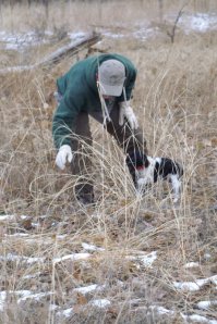 >My good friend and hunting partner Mark Thompson recently acquired a new member of the family…a French Brittany from the author of “A Hunter’s Road” Jim Fergus. Here are some photos of Remy and Emile with gun dog trainer extraordinaire Gary Ruppel. I can hardly wait to get in the field with Mark and his bird dogs!