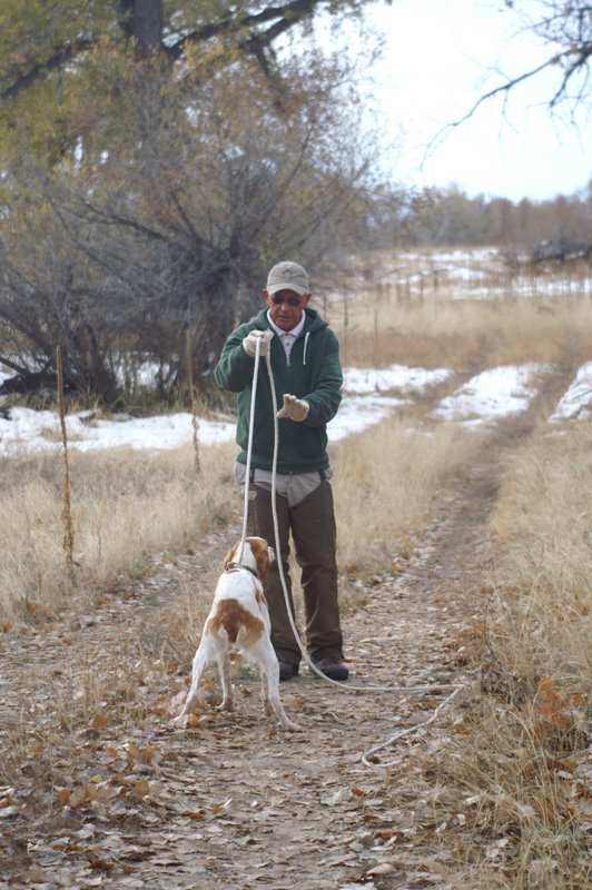Emile and Remy got a trip over to our friend and well-known gun dog trainer, Gary Ruppel, for some bird dog training today. Gary worked with Emile on quail, though he was a bit weasy after being car sick during the hour ride out to Kiowa. He is only around 12 weeks old, so he has lots of birds ahead of him, so we didn’t push him too hard. Emile is being carried around by Lauren as I write this note, as she loves her puppies, and they are very tolerant of her games. And he loves retrieving a frozen quail in the driveway at home. has been very keen on birds hunting this year, at least the few that we found as we have had a tough year with grouse, even in our honey holes. Anyway, he is now a year old and coming into his terrible twos year and needs a lot of whoa put back into him, as he enjoys chasing the birds too much for a pointing pup. It was amazing, as Gary had him steady to the flush in about 15 minutes of training. He was steady to the flush on several birds the rest of the session. Just when I thought I had learned all of Gary’s training after 15 years now, apparently I am still only performing at 75%, as his consistency and posturing did the trick in short order. I can’t wait for pheasant and quail season, which opens in another week.