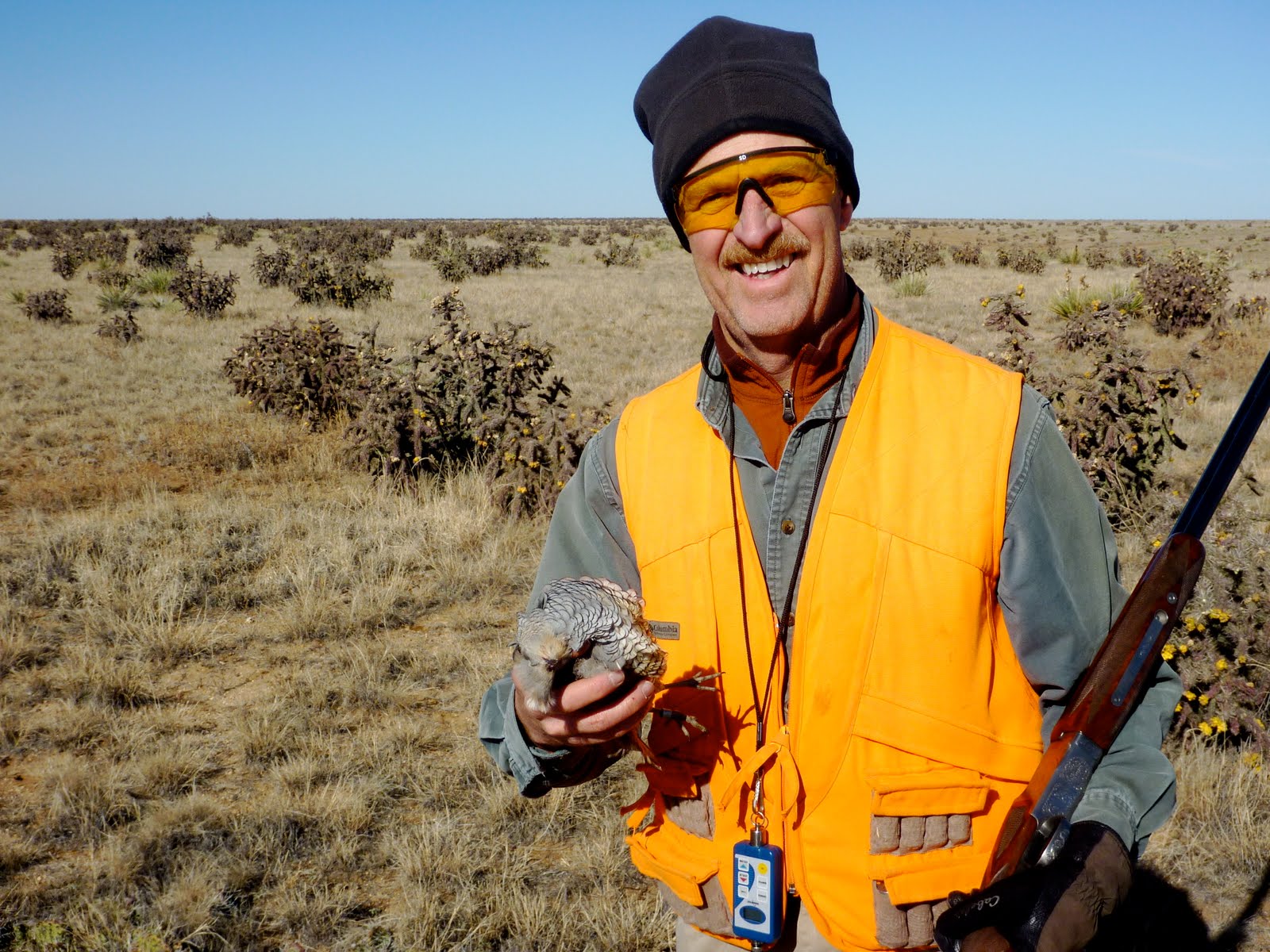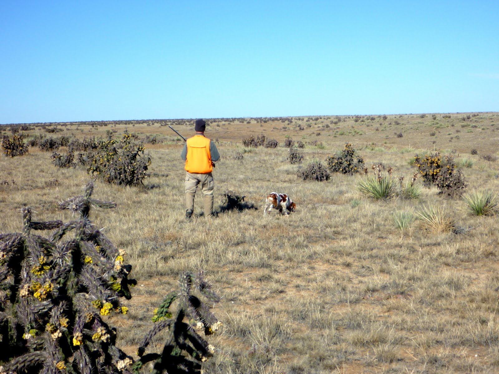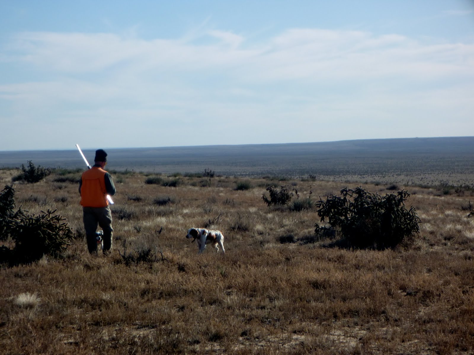 Today was one such day! Mark Kastler and I headed out early this morning to find some Colorado scaled quail with our optimistic partners eagerly in tote. We, optimistically, walked the first 4 hours in a brisk Colorado breeze leaning forward…onward we trudge, but no birds! Finally, after what seemed like the 11th hour of wondering if there were even a scaled quail to be found, Mark’s Brittany, Ranger, slammed into a point…just about tilted over! We Found birds by golly …knew that we would being the optimists that we are! In fact, we spent the magic hours mesmerized by the dog work and plenty of birds!