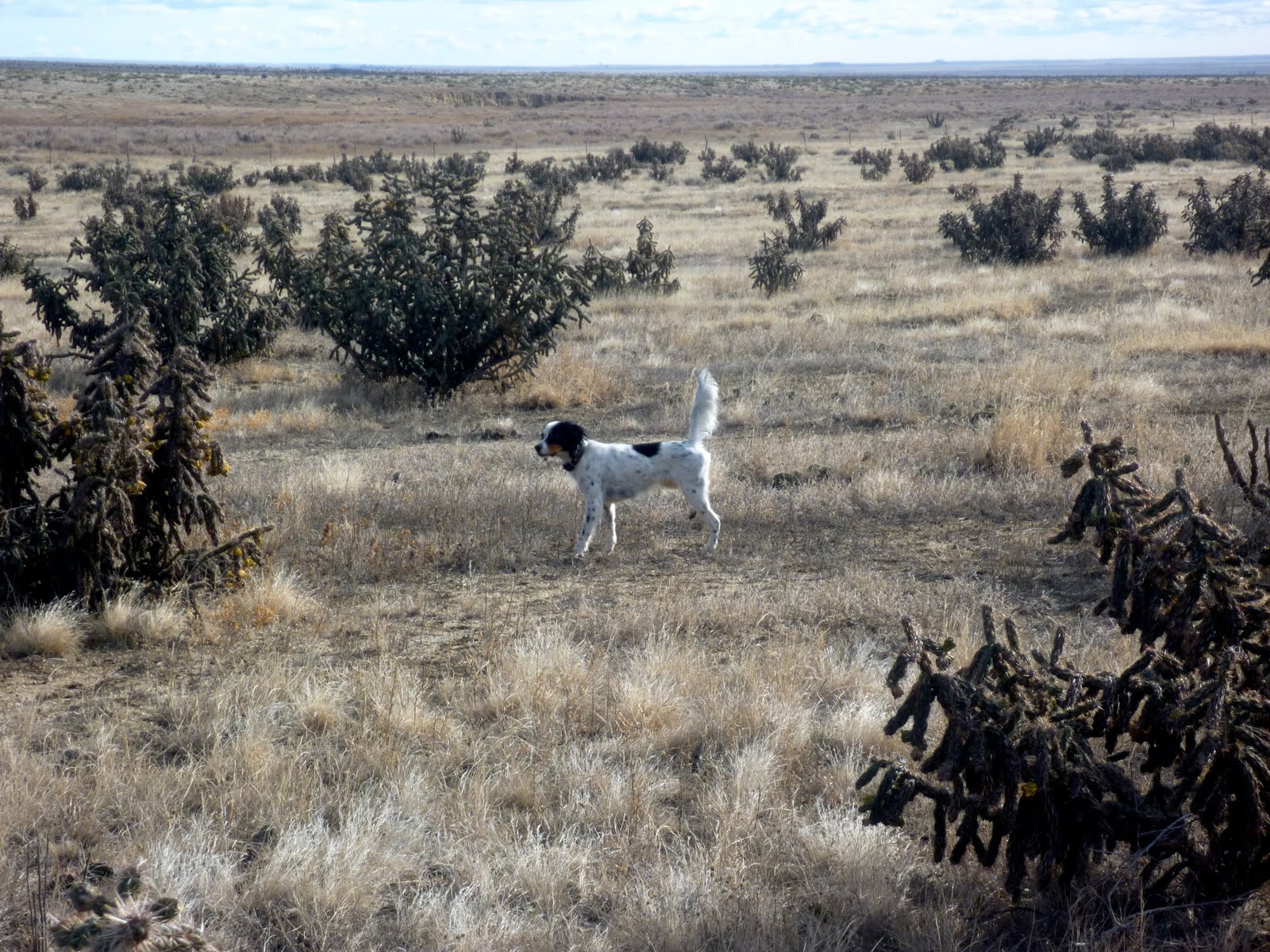 >Sterling and I met up with JD this morn’ and with bird dogs in tote, we headed to quail country…cholla-cactus-choked-scaled-quail-stick-stab-&-jab ya country.