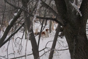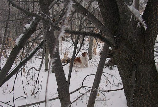 Once we got off the road, we found deep snow that made for tough going for little Sunny and me, but we trudged ahead in hopes of one last encounter with a wild grouse.