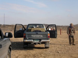 Notice the doors left open on the truck…that’s how we get on the birds fast