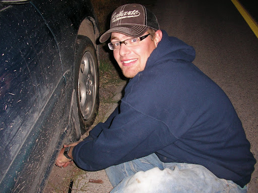 McGuyver (Jake) fixes the tire in record time.