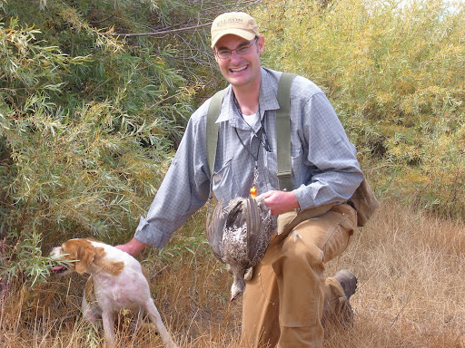 Upon reaching our destination, we felt invigorated by the view of the mountainous surroundings in all of their fall splendor. We eagerly released the dogs and hunted up a sage brush bench towards the treeline. As we hiked, chatted, and noisily crashed through the thick sage brush, a large flock of sage grouse flushed seventy yards from our position. Given their jumpiness, we decided not to pursue that flock, but stayed the course in the direction where I had seen many birds in the past. Of course, we split up a little farther and proceeded with more caution.