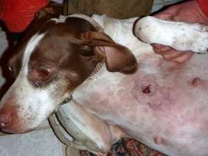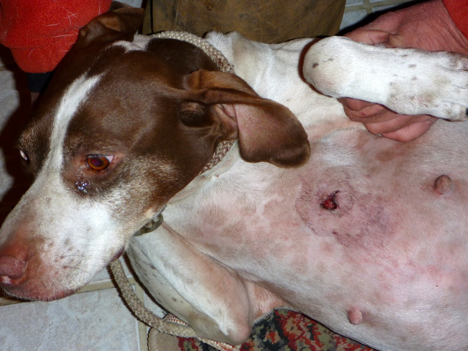 Obviously, when in doubt…seek professional veterinary care. Also, if your bird dog is profusely bleeding…APPLY DIRECT PRESSURE TO THE WOUND with a towel or shirt while in route to the nearest veterinarian.