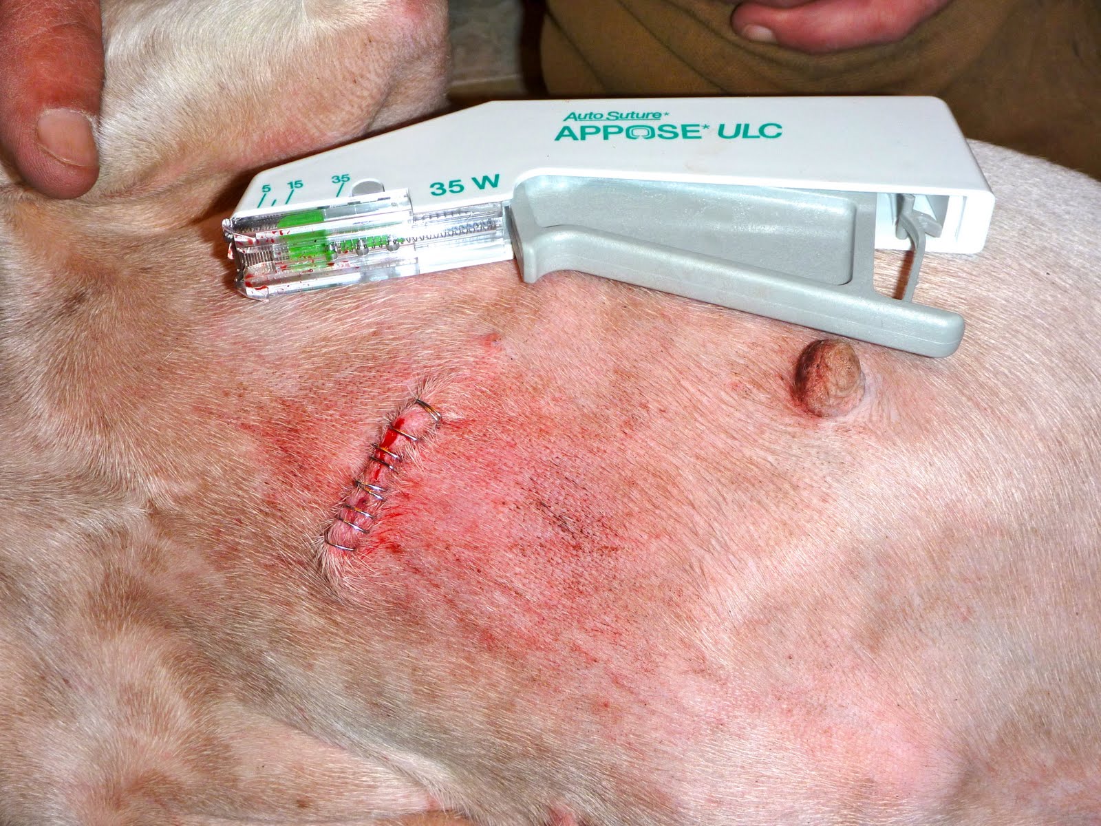 4. >Thanks for this one, Shawn. I'll look for one of those here to keep in m' kit. How long before the staples should be removed? Sadie's gotten her share of nicks & scratches, too.