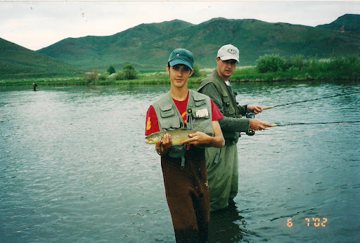 The author fights a spunky brown with a 3 weight on Joshua Creek. (Boy, I was packing a few more pounds back then!)