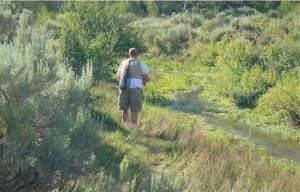 This little creek has to be fished upstream only. If you carelessly walk along the banks, you will witness multiple wakes of spooked fish. To say that you need stealth in your approach is an understatement. Also, you have to make long, precise casts, which are often snagged by the surrounding sage brush or trees aligning the creek’s banks. With all of the vegetation around the narrow creek it is difficult to get a long, drag free drift. However, most of the time, a drift of a foot or two is plenty as the resident browns will pounce on a decently presented fly.