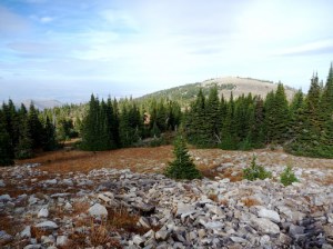 Shawn and I worked through the timber towards the peak and had to cross numerous treacherous boulder fields, evidence of time’s harsh work on this ancient mountain. In contrast, the crest of the mount was dotted with numerous unsightly radio towers and little concrete buildings, which did not fit the grandeur and beauty of this alpine setting. Notwithstanding, I usually find birds right up by those manmade structures so I try to look on the bright side of them being there.
