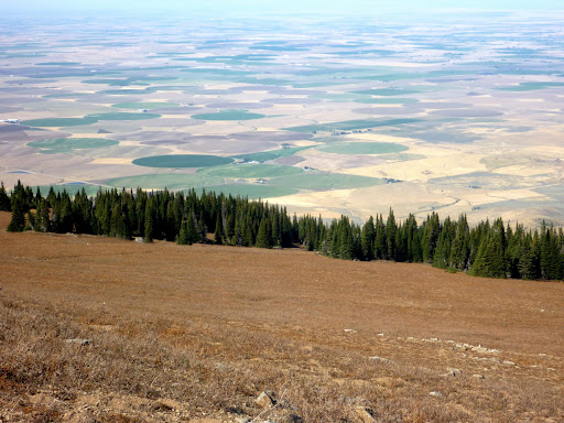 The view of the Snake River Plain below us. Notice the circular pivots.