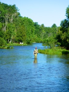 I absolutely loved Northern Michigan and the history associated with the Holy Waters.  Trout Unlimited was conjured up on the banks of the main branch…where would we anglers be without TU?  I was fascinated by the flies that were developed specifically for the Au Sable River system with my favorite being the parachute Borchers and Roberts yellow drake.  I enjoyed the fly shops in Grayling with my favorite being Gates Au Sable Lodge…the owner and the employees are knowledgeable and very dedicated to anglers on the river.  Our night hex guide, Joe Guild, was a helluva guy with passion and vast knowledge of the river, and I would strongly recommend using his services if you ever get up on the Holy Waters.