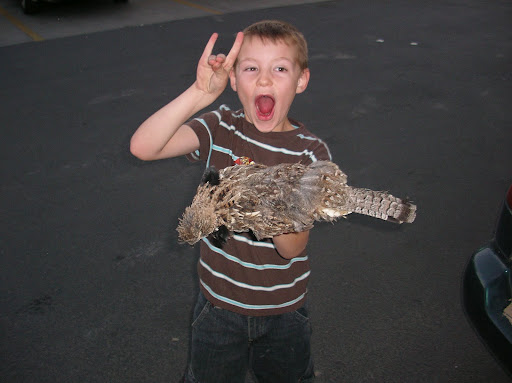 Future Birdbrain Tommy Boy is stoked that Dad got a ruffed grouse.