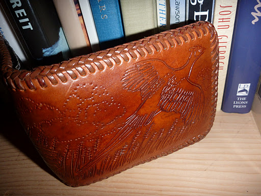 Last Christmas in 2010, I received some truly special gifts from the heart. My oldest daughter, Emma, has become a very talented artist. I was truly surprised and delighted to open Emma’s present and to see that she had painted a plaque with my two Brittanys, Sunny and Misty, two flushing birds, and a sign with the words, “GONE HUNTIN'”. She knows me oh so well! And to top it off, my Dad, who is a retired medical doctor, handcrafted a leather wallet with a flushing pheasant. Now those are both gifts from the heart! Their makers took their time and used their talents to create something that they knew I would appreciate. They gave of themselves.
