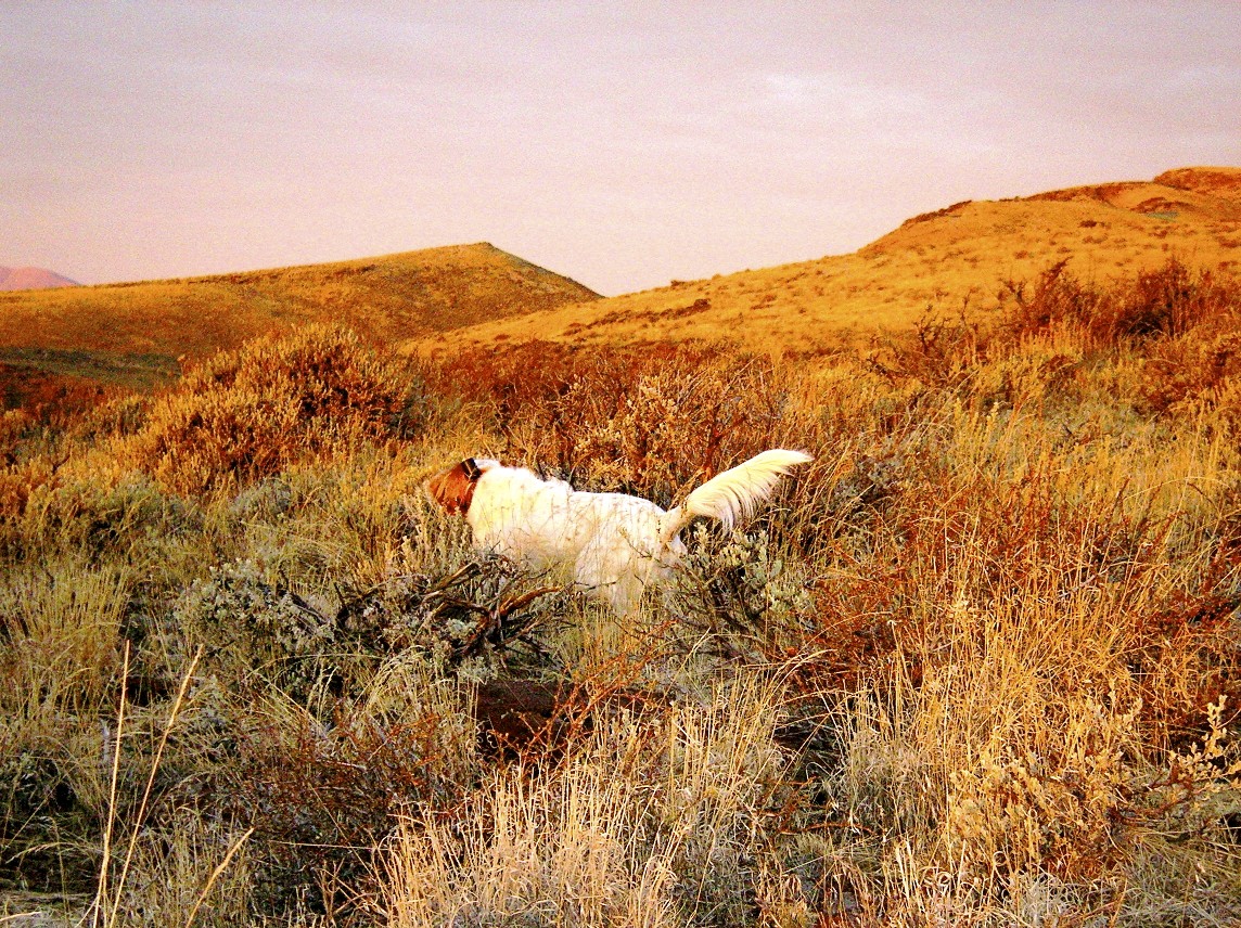 I’m waiting patiently for gobbling turkeys and caddis flies here in Colorado as the snows continue to fall on my Sangre de Cristo Mountains. Six inches this morning matter of fact. The greenbacks are under several feet of snow…however, it won’t be long ’til I’m tossing dries to my favorite natives, but until then I’ve been reminiscing on my days spent in Idaho with birds & dogs. Idaho last October 2011 was unseasonably warm and dry. Chukars were still way up in the rim-rock country Idaho is infamous for. The previous day was spent with my brother, Scott, chasing valley quail, pheasants and huns. What a unbelievable day with the coveys caught out in the sagebrush hillsides. My cover setterdog Gretchen and Gary Thompson’s long-legged GSP Pepper had over 50 staunch points on valley quail.