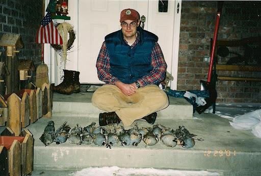 | Andy sitting in front of a pile of birds from this late-season quail hunt. |