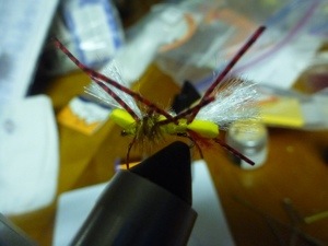 One of the things I took up this summer (and wish I had done years before) is fly tying…it adds a whole new dimension to my fishing! For the past 3 months I’ve only fished with the flies I’ve tied…had great success and some failures too. One of my favorite hatches on the Arkansas is the yellow sally stoneflies (Isoperla mormona aka little mormon girls). I saw a fly used on the rivers in Oregon and Washington called a Chubby Sally…so, I came up with my own version…hence the title above: Chubby Mormon Girl. Below are some photos of my rendition of the Chubby Sally of which I added a ginger hackle on the thorax. The browns on the Arkansas River go crazy for it during the evening magic hours.