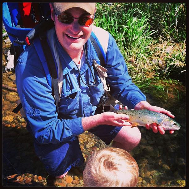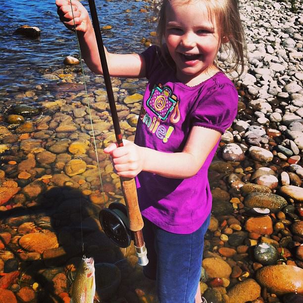 After about five minutes of fishing, the strike indicator jolted under the water and I set the hook. I then hustled back to the bank and told Lily as I handed her the fly rod, “Here’s your fish, now you get to reel it in.” The struggling trout was the perfect size for a four year old and, to my relief, stayed hooked. When we finally got it to the bank, I took the obligatory photo of Lily with her catch on my iPhone. Lily’s smile was unforgettable.