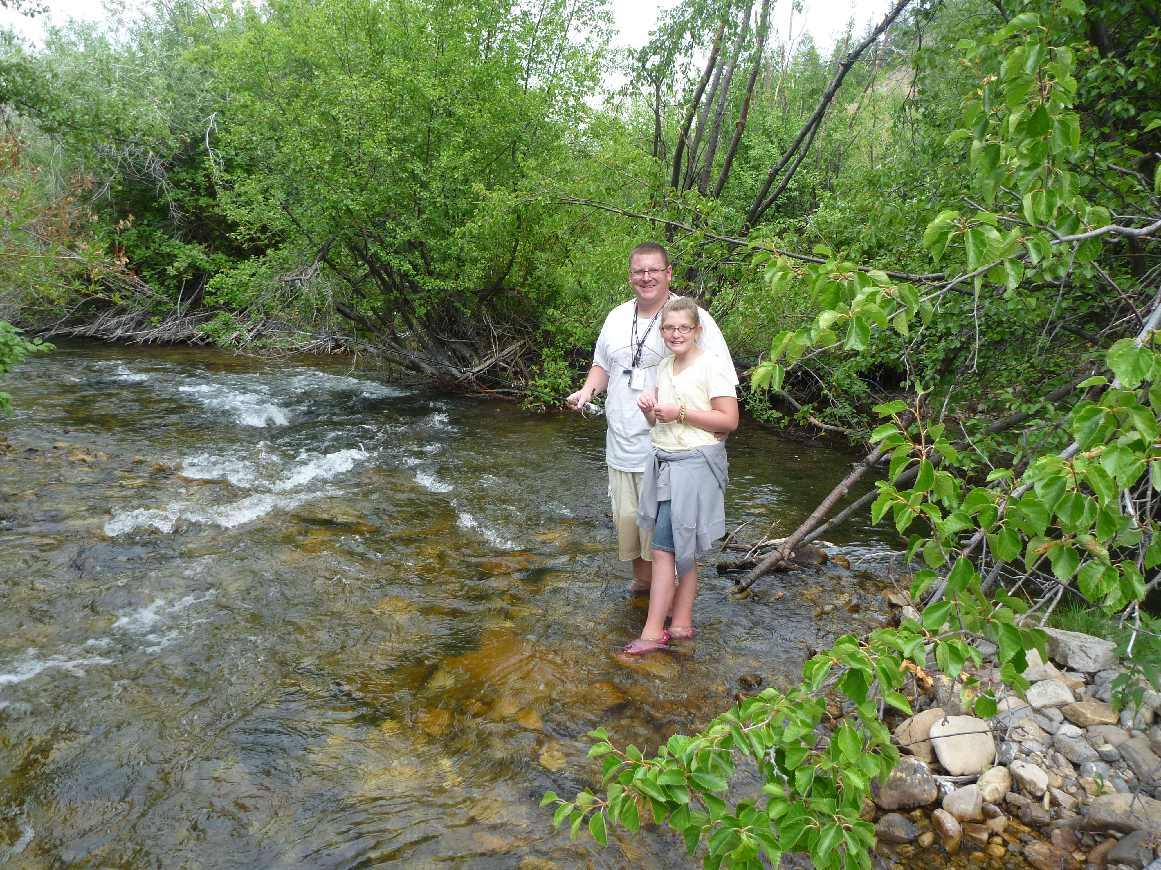 We quickly drove over to St. Charles, Idaho and up the canyon, but missed our usual parking spot along the creek.  When I turned around, I ran over a nasty rock that punctured a back tire which deflated completely in less than two minutes.  Earlier that week, we had just replaced the back brakes in the Yukon and neglected to put the tire iron and all of the necessary pieces of the jack back into the vehicle before we left for the family reunion.  As you can guess, I was never a great Boy Scout.  We were up the creek without a paddle so to speak and it didn’t look like we would get to fish after all.