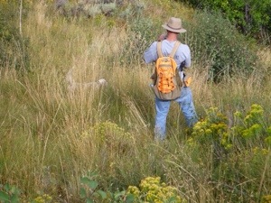 Meanwhile, I sent Tom to another spot on his way north to see if he could get into some huns and grouse while we struggled to produce a single small covey of California Quail. Andy’s dog made a nice find on a covey, but it was so small that he decided to leave the birds for the next reproduction season…seed birds.