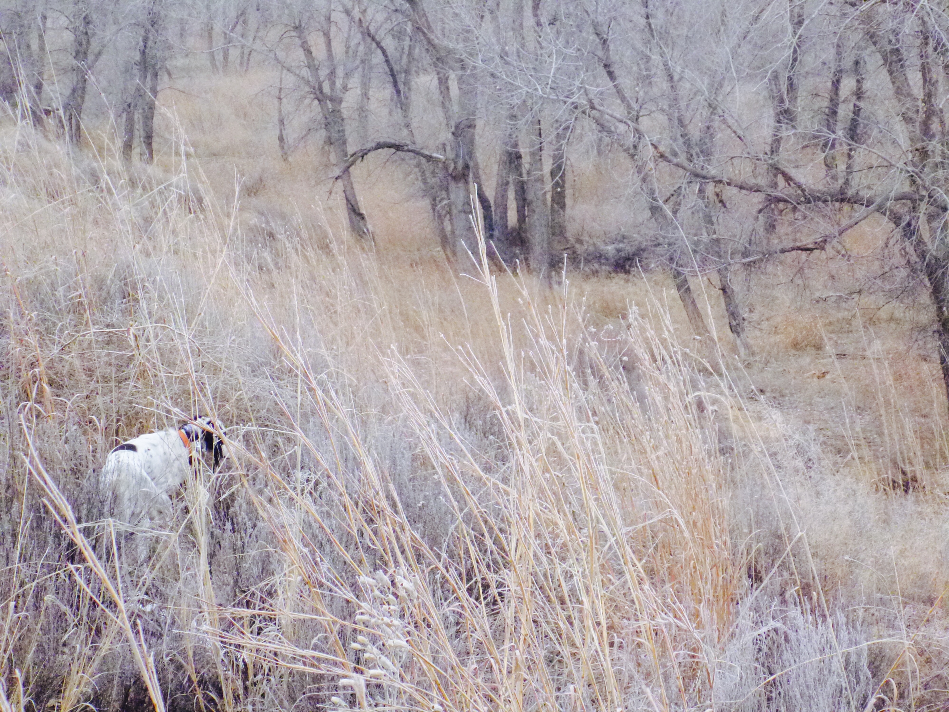 Grouse River Gretchen was 4 months old when she arrived to DIA from Pinkney MI. My first impression was “Where’s the other half of my dog?”. At 16 weeks she was scrawny…smallest setter puppy I’d ever seen. She was a juvenile hellion on wheels around the house. Several times I recall her jumping the furniture to go check out the cat. She was a terror to her siblings…canine and human. I was excited for the following September to roll around…to finally get her on wild birds. We’d work in the yard throughout the summer and worked on her coming back when I called her. I swear she didn’t know who the heck I was until she was almost 2 years of age. I took Gretchen to eastern Montana that first year at the end of October. I can remember sitting on the tailgate of my hunting partner’s truck for an hour praying and hoping that she would return. Over the horizon she went. Eventually she did come back but it wasn’t until the following year that Gretchen made an amazing point on 4 Colorado scaled quail sitting in a yucca plant. I’ve been enamored with her ever since. Gretchen has become the best quail dog I’ve ever had…she learned from my Elhew pointer Geppetto and now she has certainly surpassed Gep’s training. She’s not perfect, but I love everything about Gretchen.