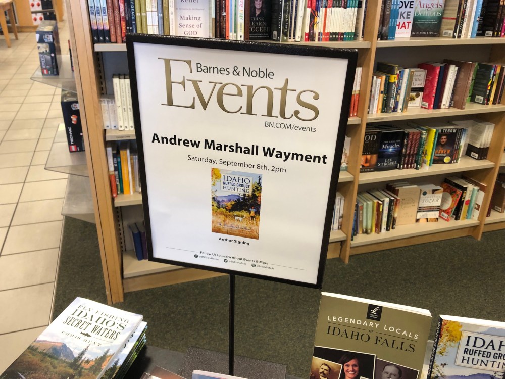 Also, I’m scheduled to do a Meet the Author/Author Signing event on Saturday September 8, 2018, from 2:00 pm to 4:00 pm at Barnes & Noble in Idaho Falls, Idaho. I’ve never done anything like this in my life, so I don’t know what to expect. Honestly, I hope people show up. I understand that most Idaho grouse hunters will be out hunting that day, but if you take a break, come by and see me!
