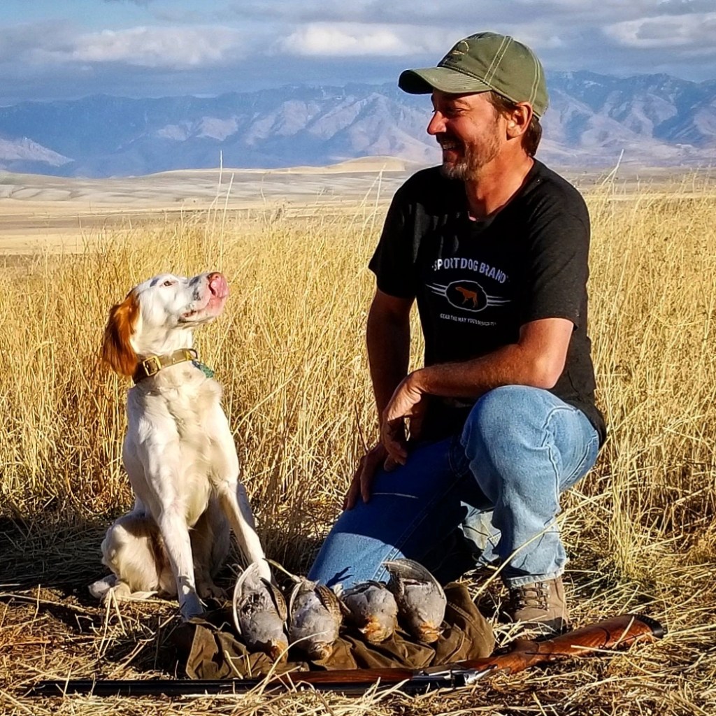 I’ve known Bret on social media for over ten years. I’ve always enjoyed reading about him and his setters, their training, hunting adventures and field trials. Bret and I share a love of forest grouse hunting with pointing dogs and I’ve enjoyed seeing photos and videos of his hunts over the years. Bret is also a waterfowl hunter and, believe it or not, he uses his setters to hunt ducks and geese. In addition, he is a former Utah State champion duck caller, passionate chukar hunter and conservationist, and also takes time to teach youngsters about his passions.