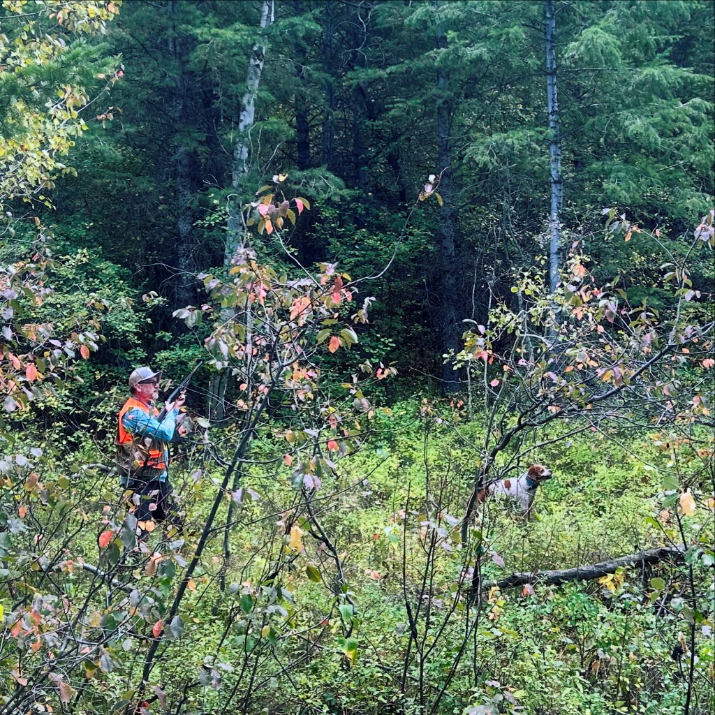 With the bird sitting on a limb, I picked up a tree limb and tossed it up there to make the bird flush for another shot. Upon the first throw, the bird simply flew to a higher branch in the same Douglas Fir. I searched for another limb and pitched that one with a vengeance. Instead of flying away from me, the bird then roared over my head at Mach 1. I spun around while raising the RRL 28, squeezed the trigger, missed the fleeting grouse on the first shot, and then dialed in and dropped the grouse on the second. It took us a long time to locate the downed grouse. I’d rather shoot a grouse that flushed from the ground over a tree flushed bird any day. But I pocketed this bird as a consolation prize. We found no more birds in the Creeks and John had to leave early for Una’s training session with a professional trainer.